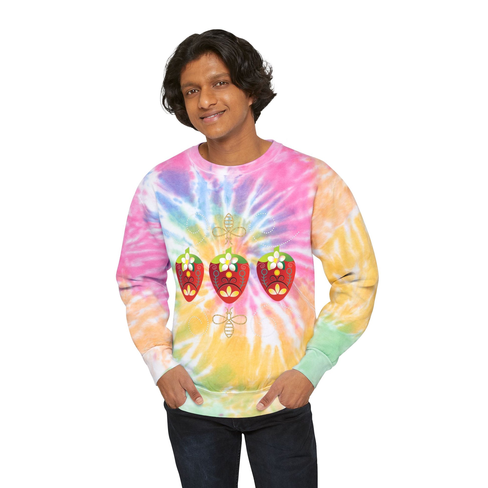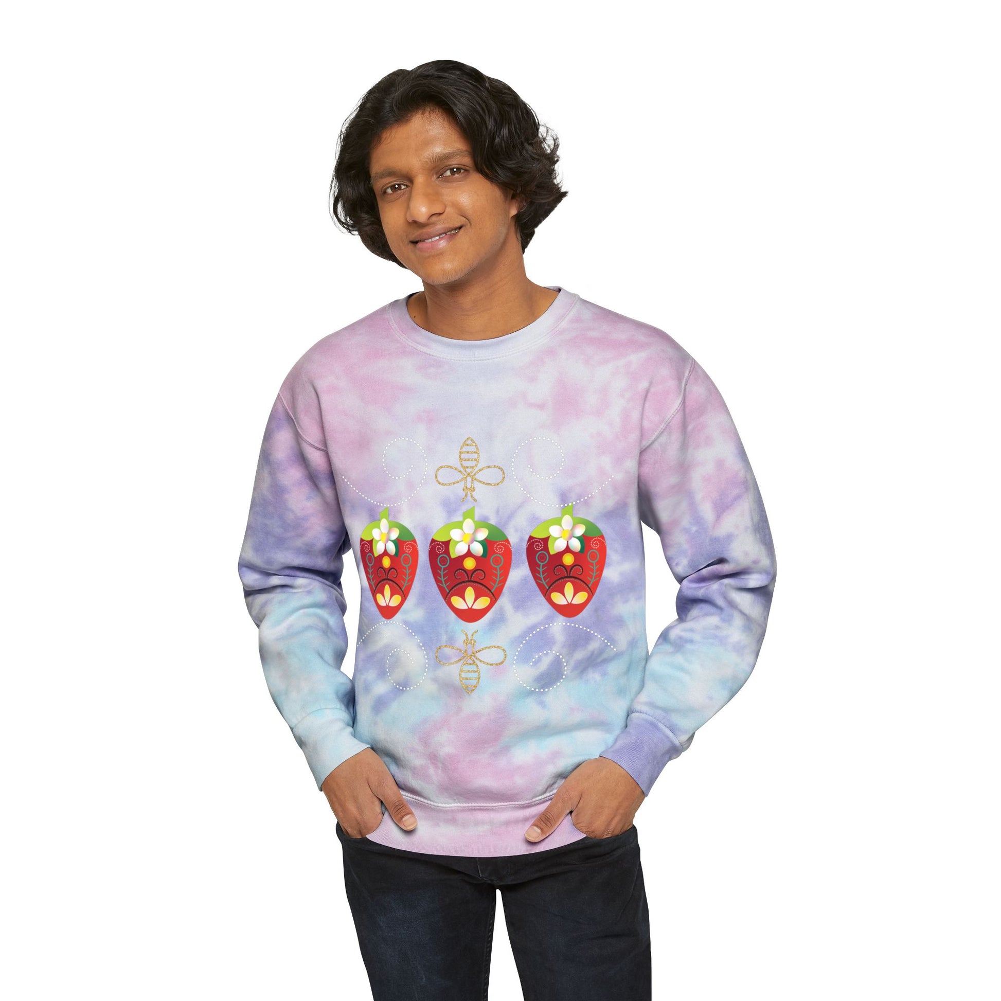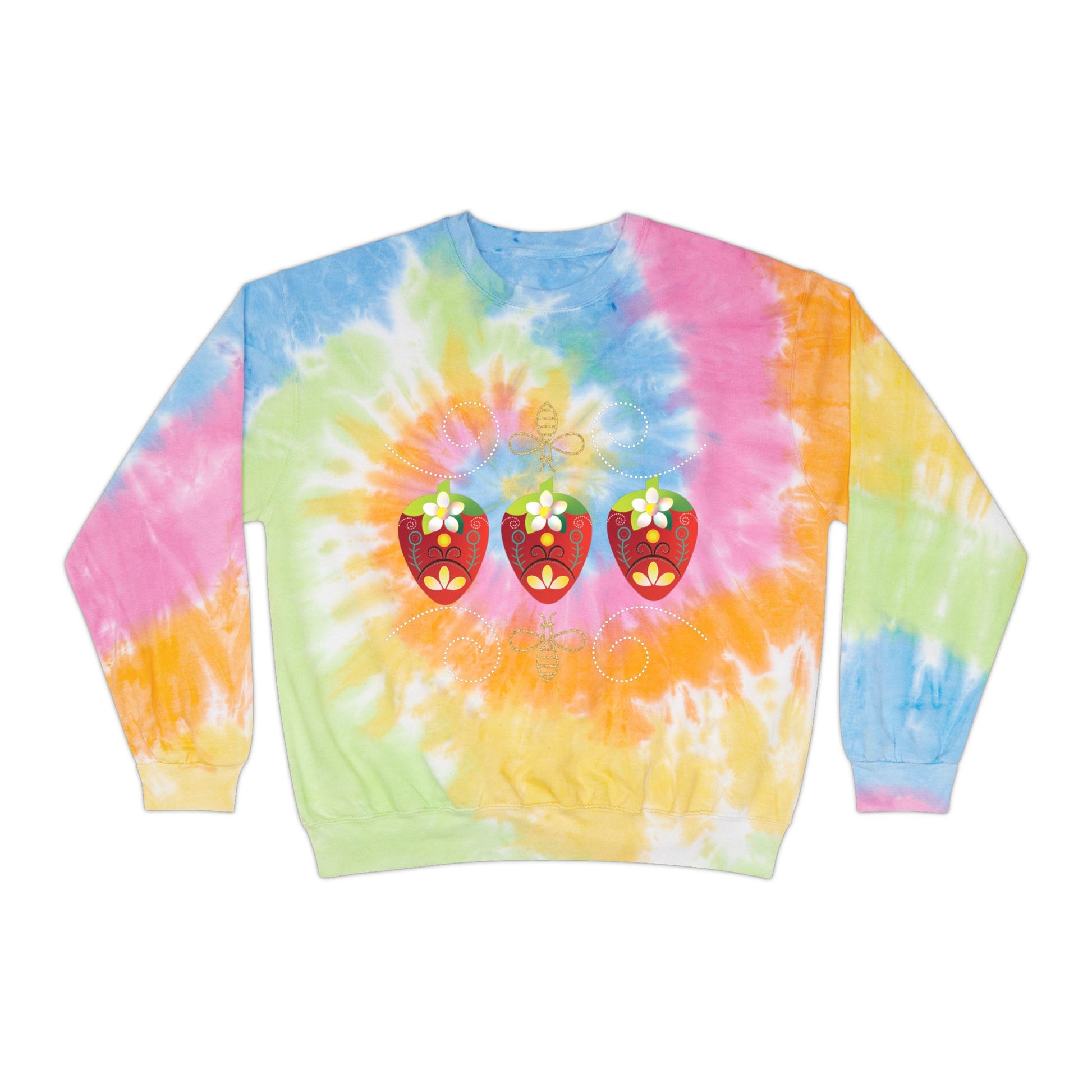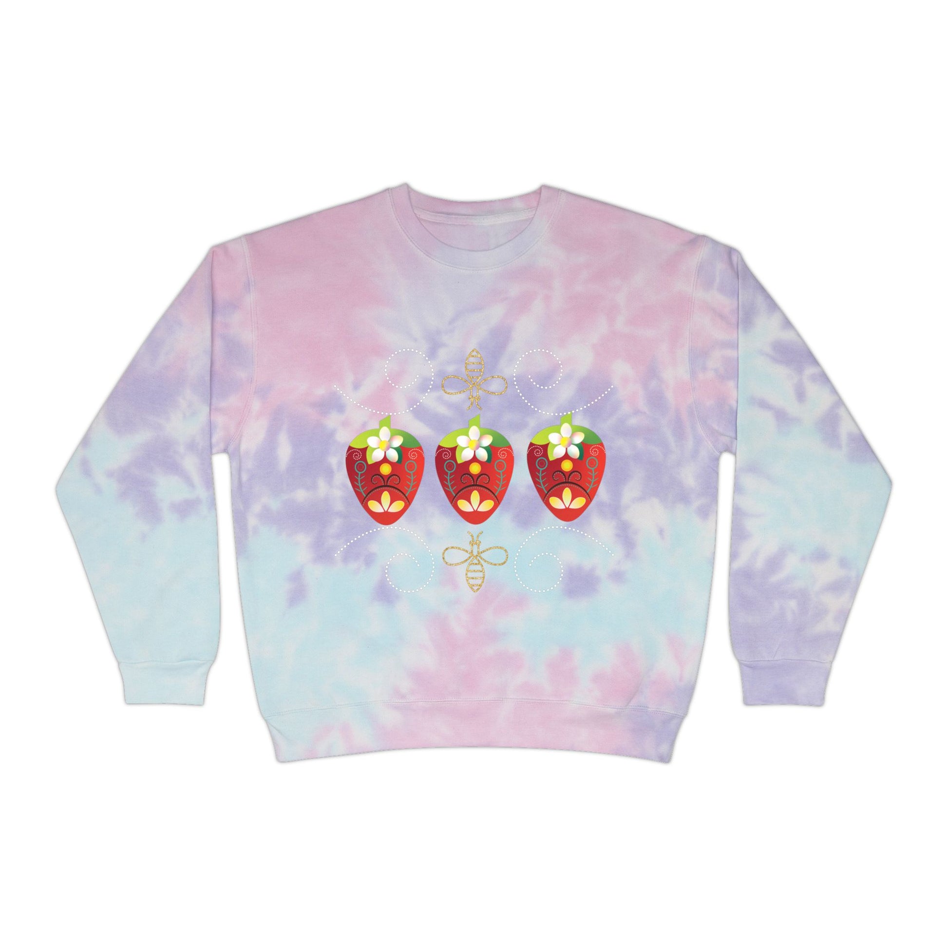 Pastel Tie-Dye Sweatshirt with Floral Strawberries, Cozy Pullover, Summer Casual Wear, Gift for Her, Rainbow Vibes